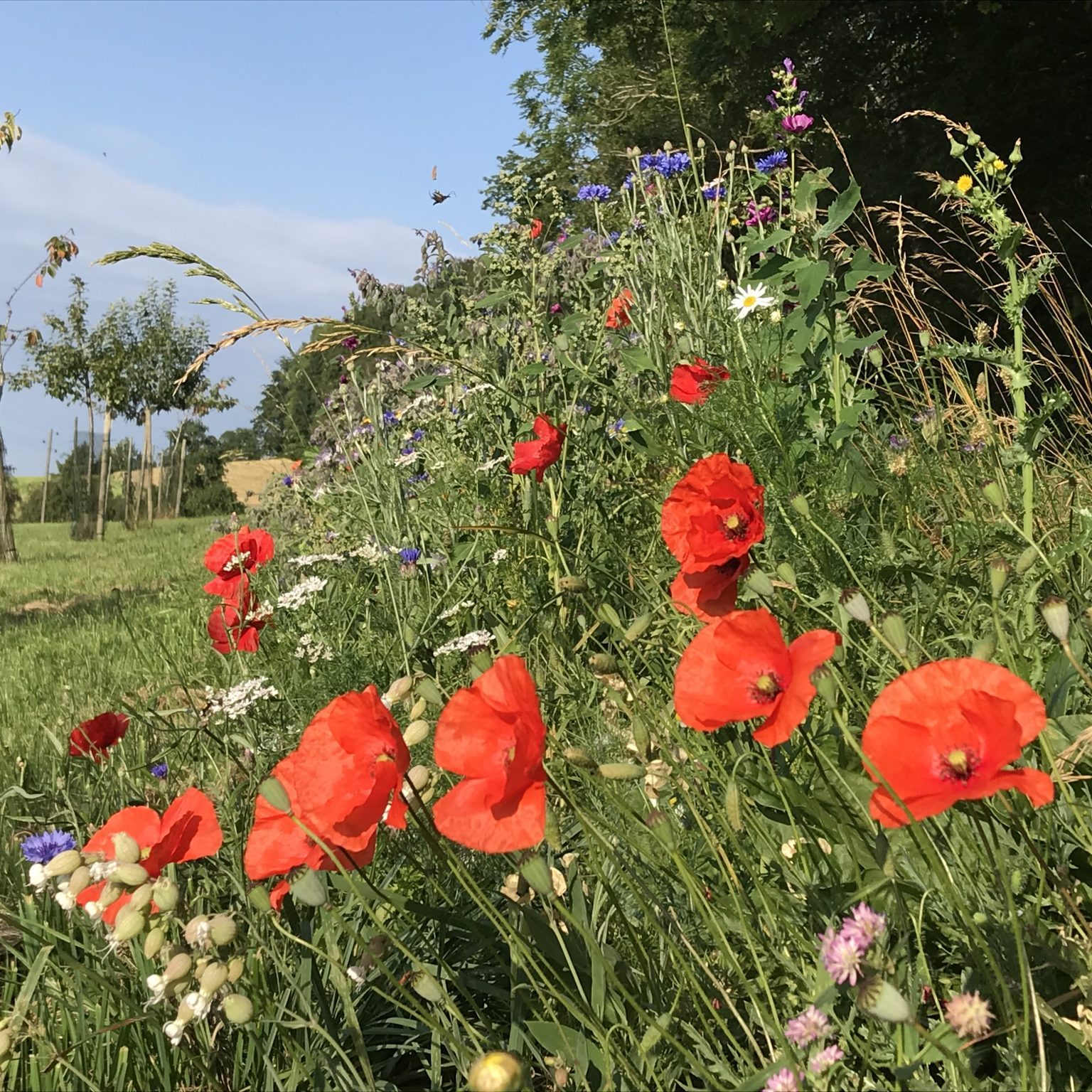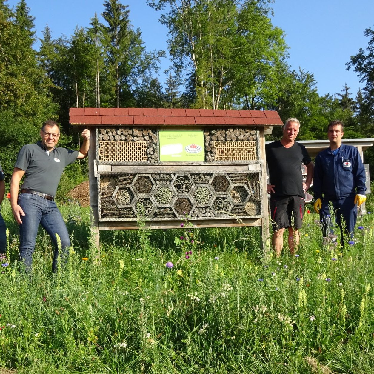 Die Blumenwiesen wurden dieses Frühjahr von Marcus Hubrich (Betriebswerkstatt/Außenanlagen) und Berthold Sattler (Leitung Kantine) auf dem Buchberg und um das Firmengelände ausgesät. Das Bienenparadies auf dem Buchberg -oberhalb des Schwarzwaldhofes- grenzt direkt an unsere Streuobstwiese mit Obstbäumen die auch im Zuge der Nachhaltigkeit von unseren Mitarbeitern 2014 angelegt wurde.