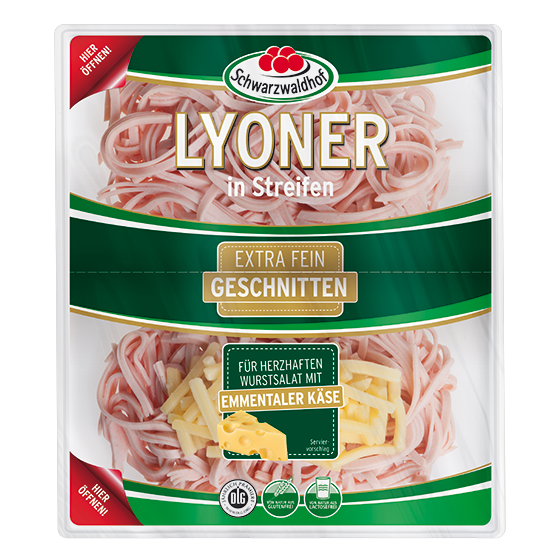 Lyoner in Streifen mit Käse