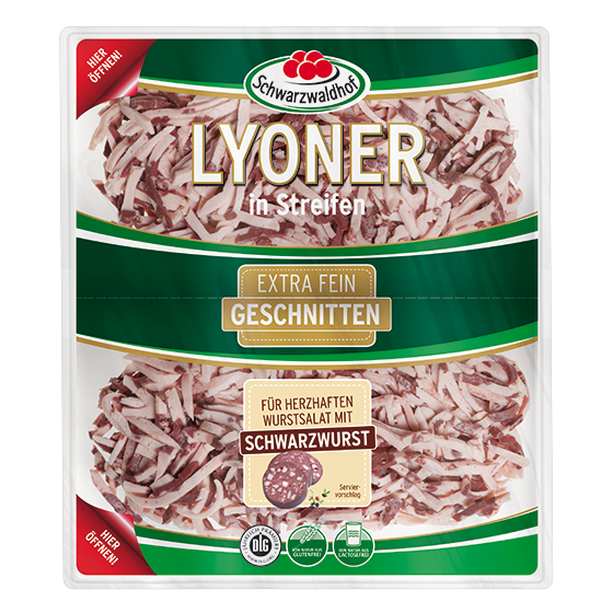 Lyoner in Streifen mit Schwarzwurst