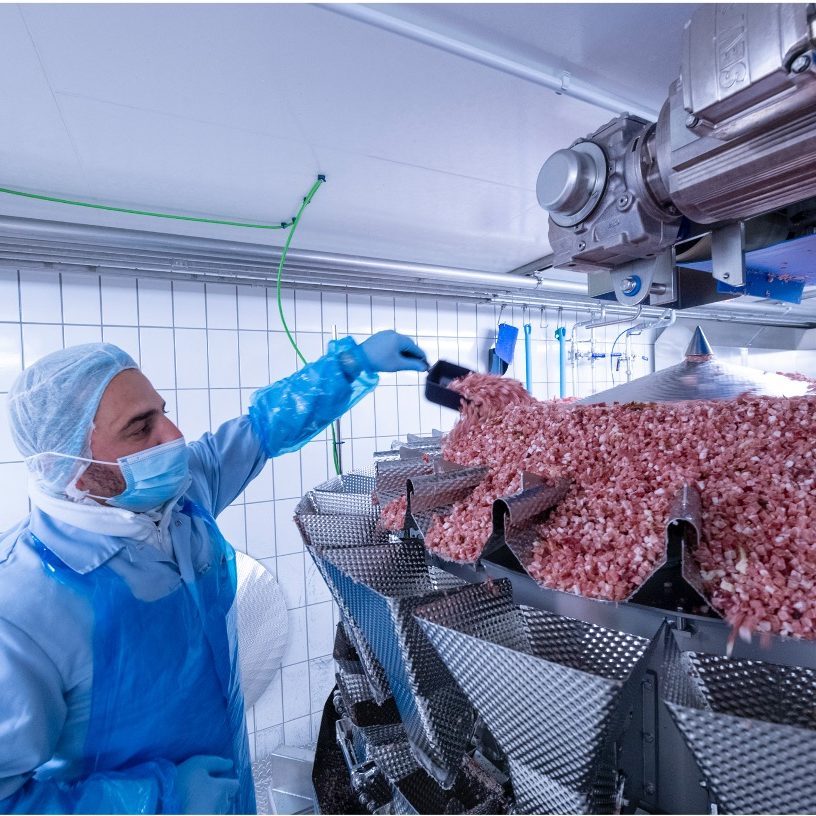 Vor dem Verpacken der einzelnen Schinkenscheiben wird das Gewicht abermals überprüft.