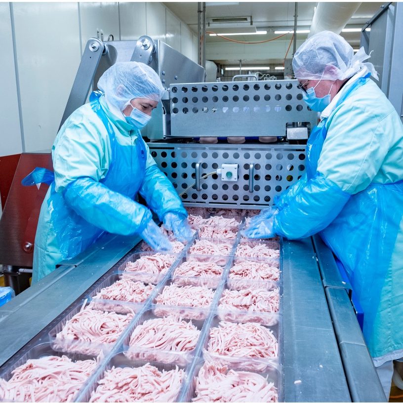 Unsere Atemluft besteht zu 78 Prozent aus Stickstoff und zu etwa 20 Prozent aus Sauerstoff. Damit sich keine Keime bilden, wird die Luft vor dem Verpacken des Schinkens abgesaugt. Sauerstoff wird durch Stickstoff und Kohlenstoffdioxid ersetzt. Im Rahmen der Qualitätskontrolle prüfen Mitarbeiter danach den Restsauerstoffgehalt.